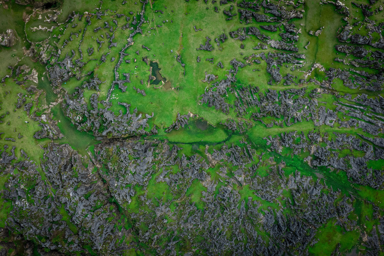 เริ่มต้นด้วยการเดินป่าจาก "มหาสมุทรหิน" ที่กว้างขวาง ซึ่งเป็นทัศนียภาพแบบคาร์สท์ที่เกิดจากการเคลื่อนตัวของพื้นโลกมาหลายล้านปี หินสีเทาและหินยักษ์ที่เกิดขึ้นเรียงรายกัน สร้างเป็น "ป่าหินขนาดเล็ก" ที่คล้ายเขาวงกตตามธรรมชาติ ให้ผู้นำนำทางค้นหาหินแปลกตา ทำความเข้าใจสาเหตุของลักษณะภูมิประเทศ เช่น "ร่องน้ำ" และ "กลุ่มยอดเขา" เพื่อเริ่มต้นความรู้เกี่ยวกับตำนานทางธรณีวิทยาของ "จังหวัดสวนภูเขา" กุ้ยโจว